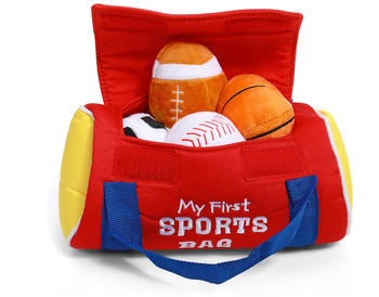 毛绒运动包,带柔软毛绒球的毛绒包。运动套装包括包、篮球、棒球、足球玩具